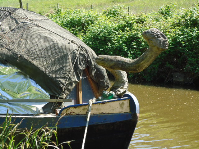This boat, which was also featured on the BBC programme aboutthe area, was for sale. The whole of the cover, I think, was detatchable, below is the strange head, fitted to the stern.